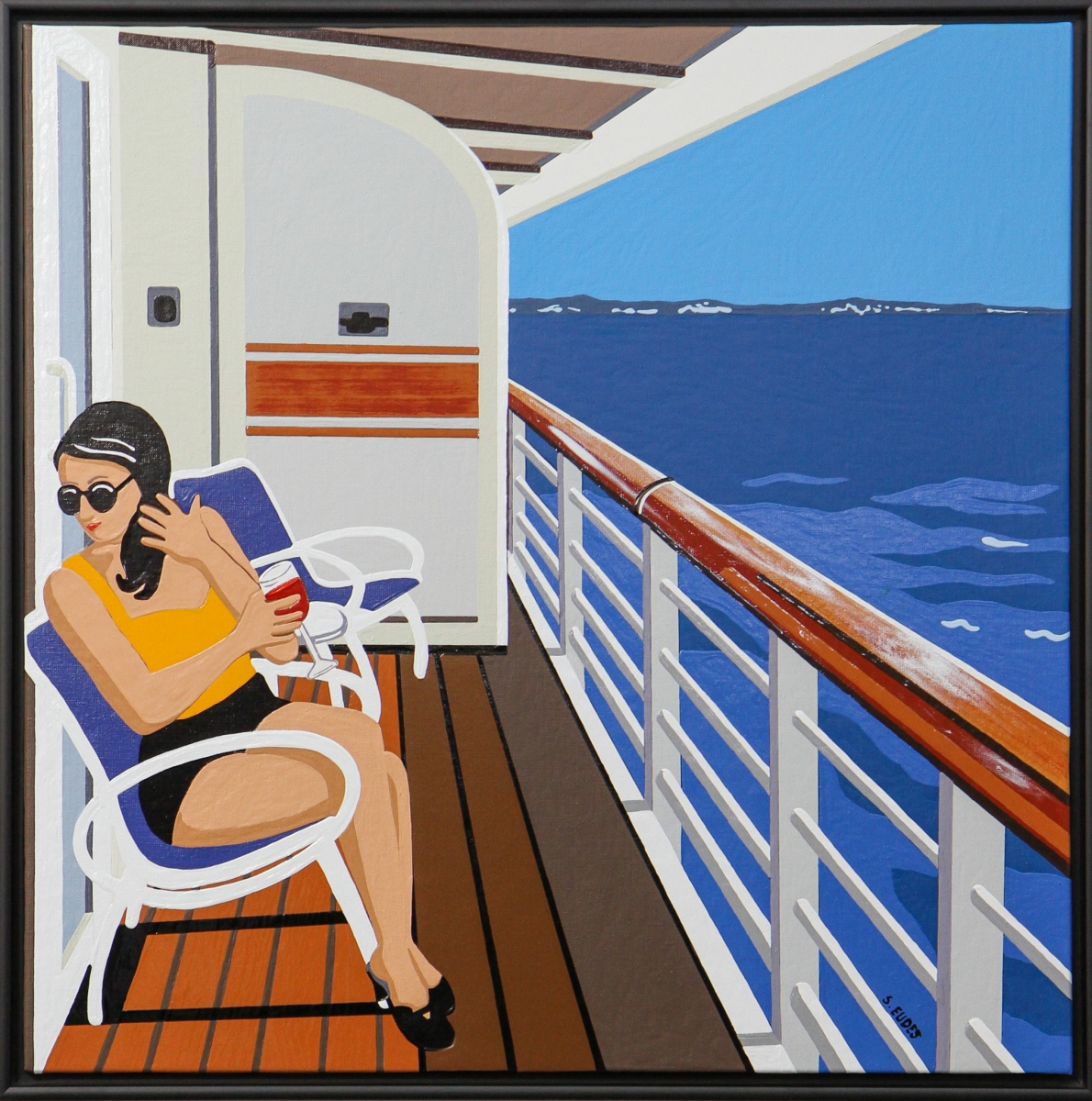 Elle travaille la laque depuis plusieurs années. Cette technique lui permet de faire des fusions de matières. Ses tendances sont figuratives. Pour cette exposition, elle propose une rétrospective sur trois périodes : Pop Art, Art Singulier, dernières créations contemporaines, épurées essentiellement en aplat.