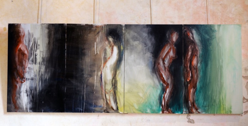 Des peintures réalisées lors de poses en mouvement, jâ??en ai tiré quelques dizaines pour illustrer « La Jeune Parque », de Paul Valéry et les poèmes antiques de Sappho. Ce projet, intitulé « Moires » prend la forme dâ??un livre et de plusieurs expositions cet été 2015, dont celle de Port-Bail. Les images de corps et de la mer alterneront, répondant aux interrogations de la Jeune Parque et aux chants de Sappho.