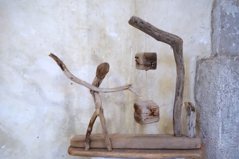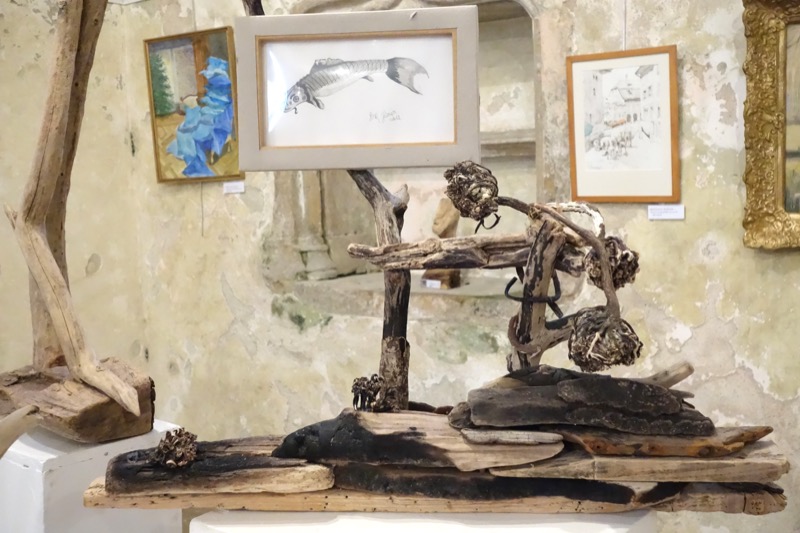 Touche à tout et curieuse de matières, lâ??assemblage de bois flotté puis la sculpture de pièces de bois maltraitées par les éléments marins sont le prolongement immédiat de son humeur du moment. Imaginative, essayiste, le résultat de ses compositions reste très personnel.