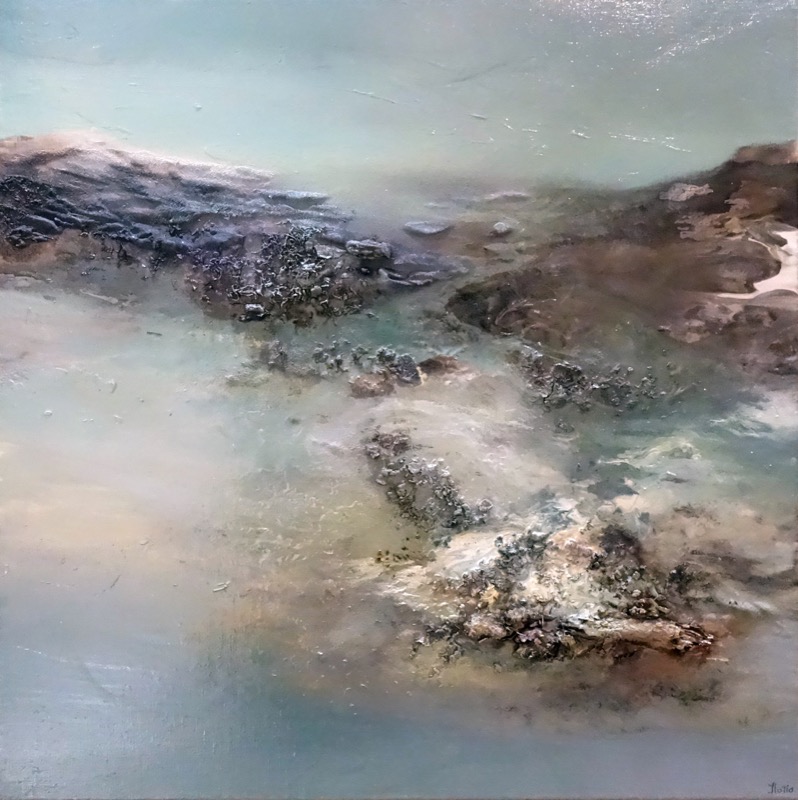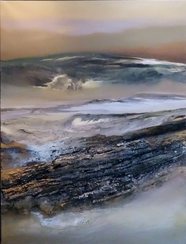 Peinture à lâ??huile sur toile avec apport de matières et matériaux divers (essentiellement éléments de la nature : bois, sable, etc.). Recherche graphique abstraite, composition et ligne de force donnant parfois lâ??apparence de paysages imaginés ou réels. Ã?vocation de la puissance des rythmes et des couleurs du temps sur nos vies.