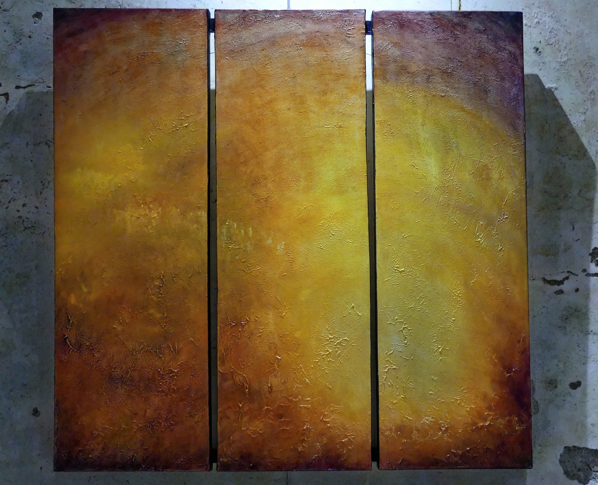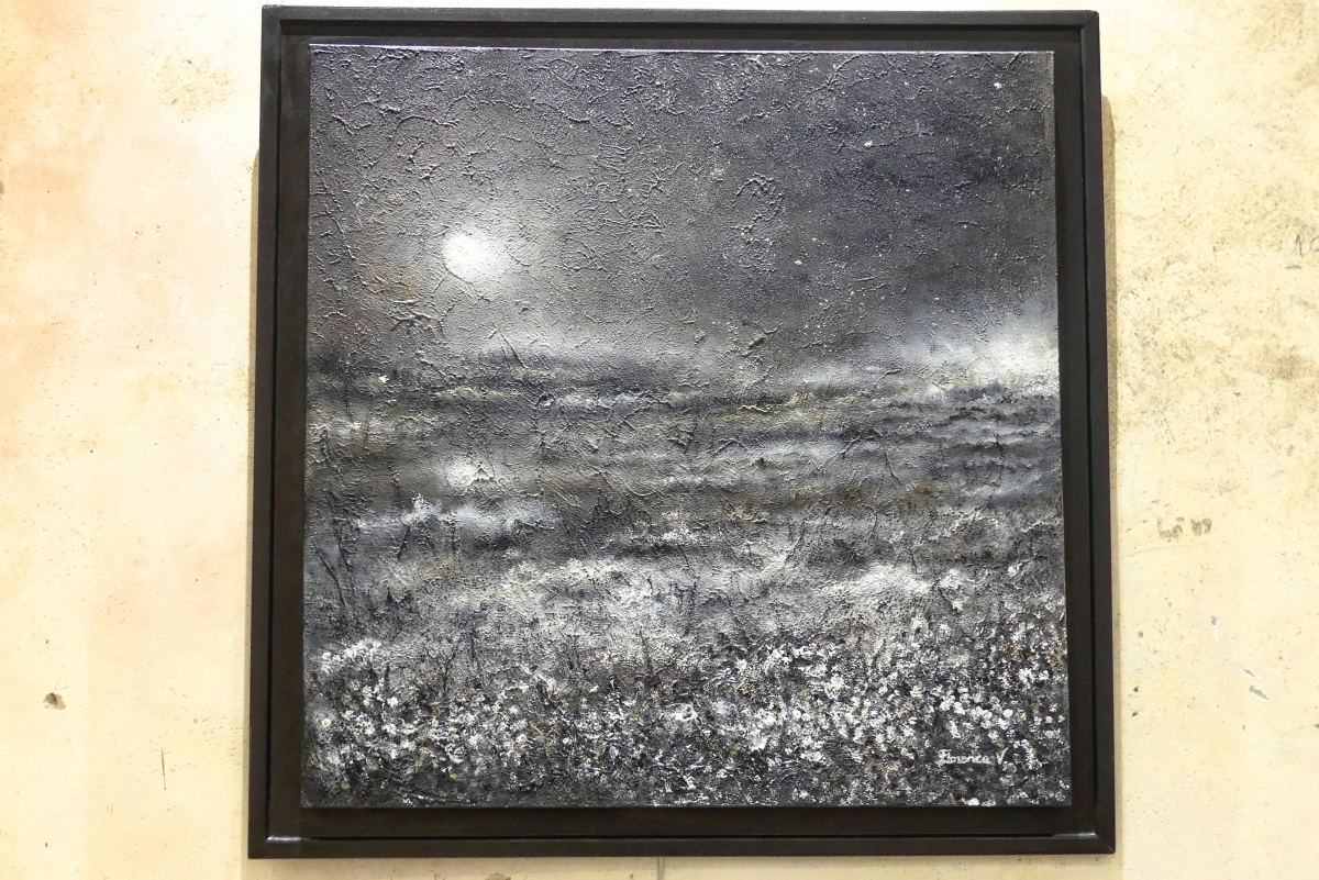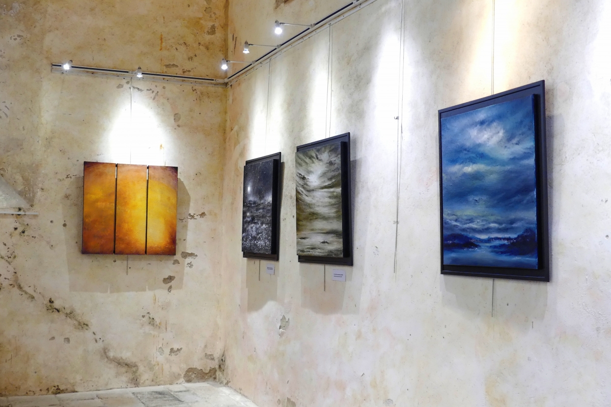 Directement du coeur, aux doigts, à la toile, sans pinceau ni palette, je laisse lâ??imaginaire ré-enchanter la vie. Je plonge dans la toile comme dans les profondeurs de lâ??océan. Tout au fond plus rien nâ??existe. Je suis bien. Peu à peu lâ??émotion surgit sans même savoir dâ??où elle vientâ?¦ au moment où je ne lâ??attends pas. Sur la toile apparaît lâ??alchimie dâ??un souvenir enfoui mêlé de lâ??émotion quâ??il susciteâ?¦ et la magie opère. Je laisse faire. Les couleurs se mélangent. Le tableau se construit. Mon aventure devient celle du spectateur.