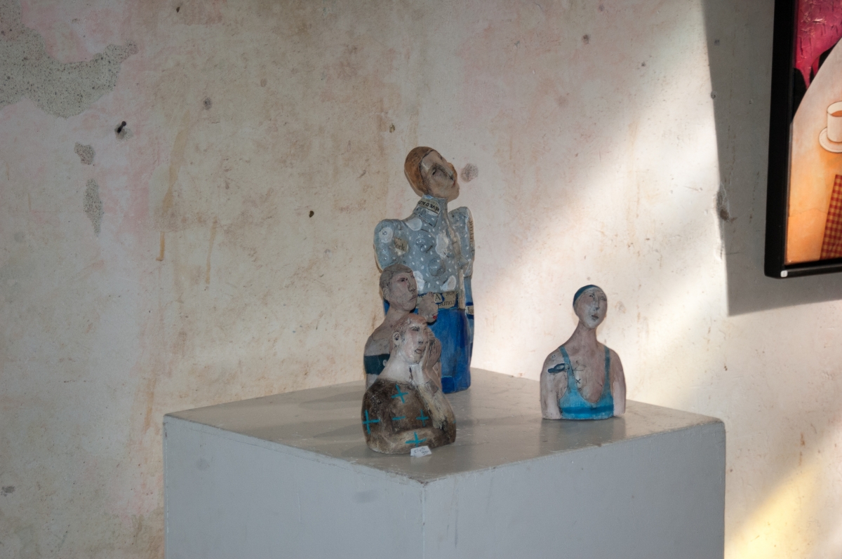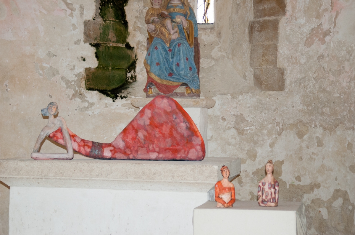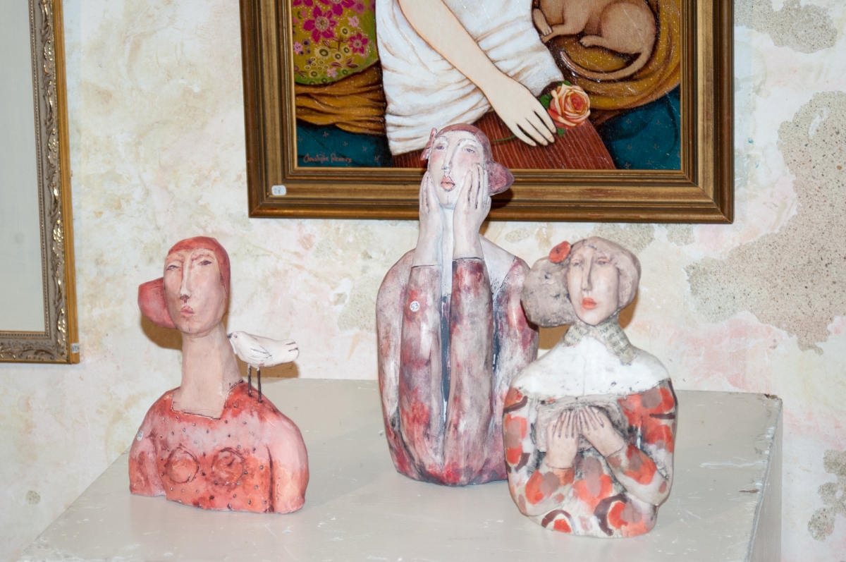 Nathalie Guet Desch est installée aujourd hui dans le Beaujolais. Elle peint, et sculpte en terre ou papier mâché. Chaque matière apporte une intensité et une identité à ses personnages souvent féminins, mélancoliques et rêveurs. Les couleurs, les formes, les attitudes de ses corps feminins sâ??installent dans la douceur et la poésie. Pour lâ??exposition de Port-Bail-sur-Mer Nathalie a travaillé en collaboration avec Christophe Renoux sur le thème de la lecture.