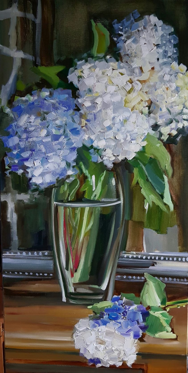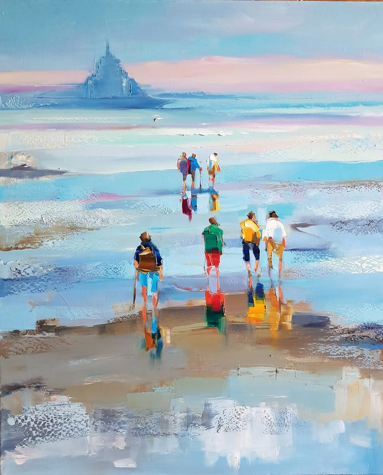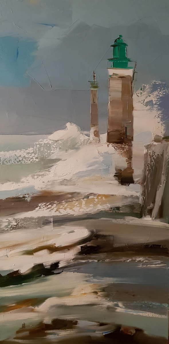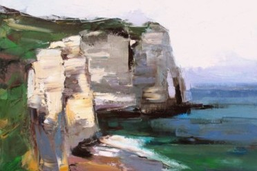 Mes sujets préférés sont les paysages de Normandie et de la Bretagne. Mon outil préféré est le couteau qui me donne la possibilité de travailler la matière.