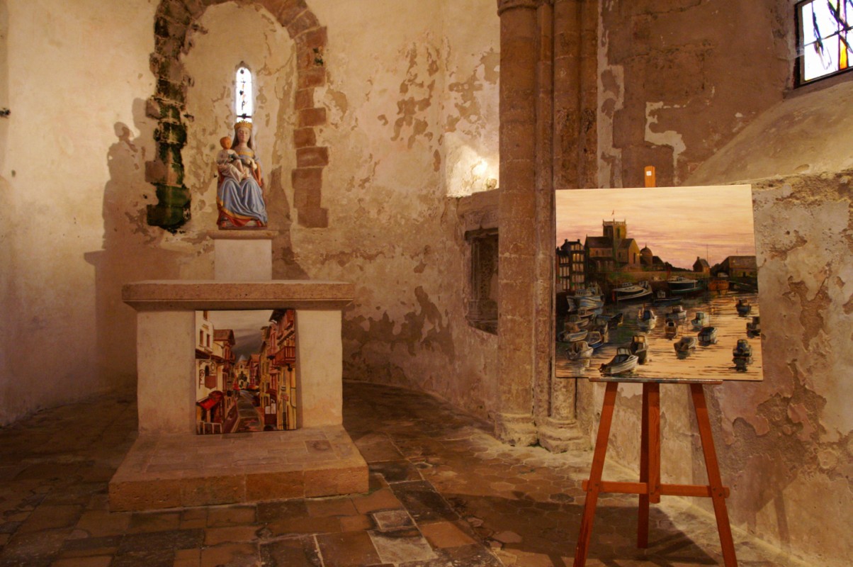 Daniel Garlandat n'est pas né dans la région, il y est venu par amour. Peintre expressionniste, il se nourrit de ses émotions et ses réalisations sont étroitement liées au Cotentin. Les personnages attendrissants et cocasses... Les fleurs étonnantes et radieuses... Les paysages sereins et de caractère... L'architecture discrète et chargée d'histoires, sans oublier les saisons, les lumières, les odeurs, les bruits...