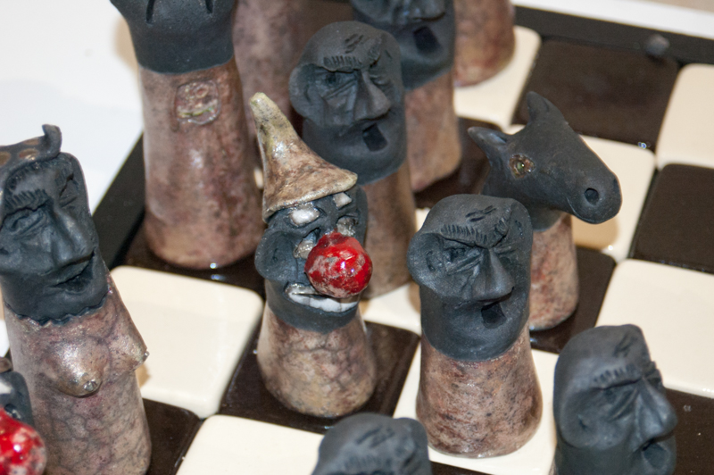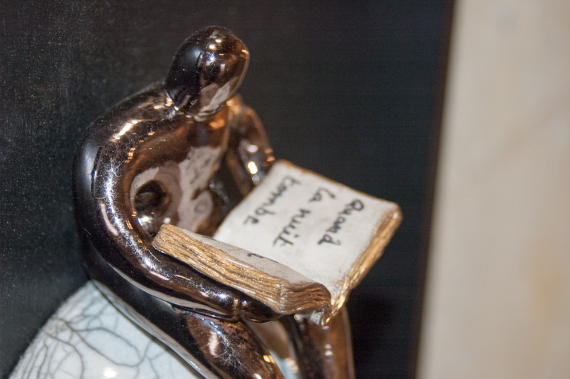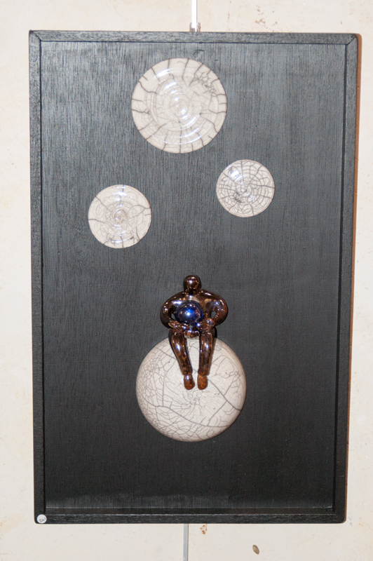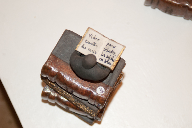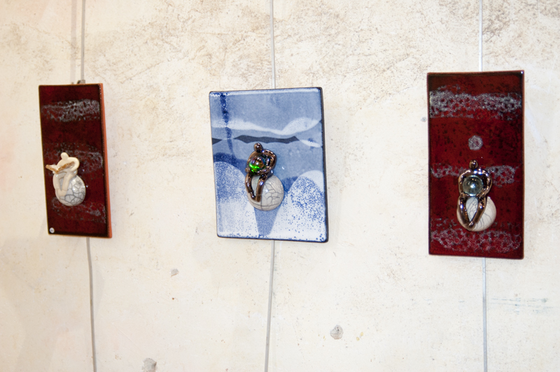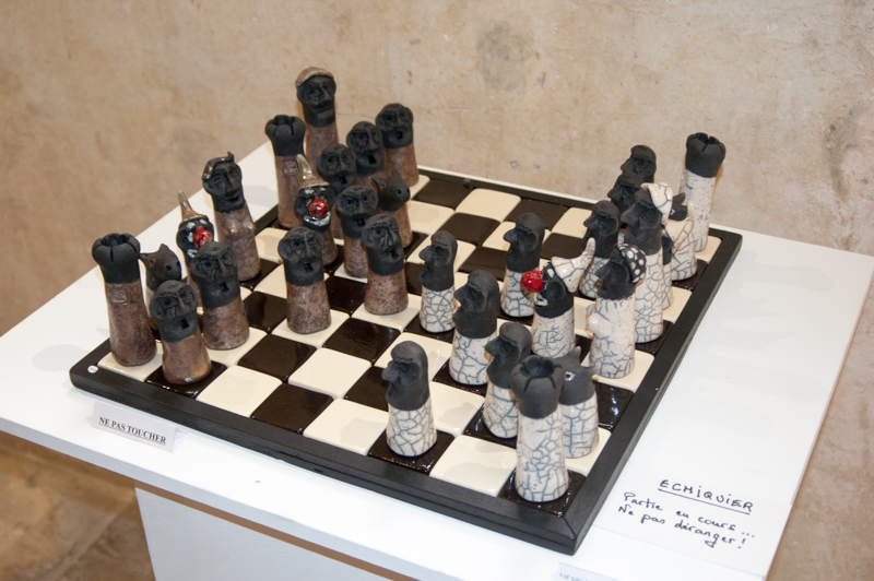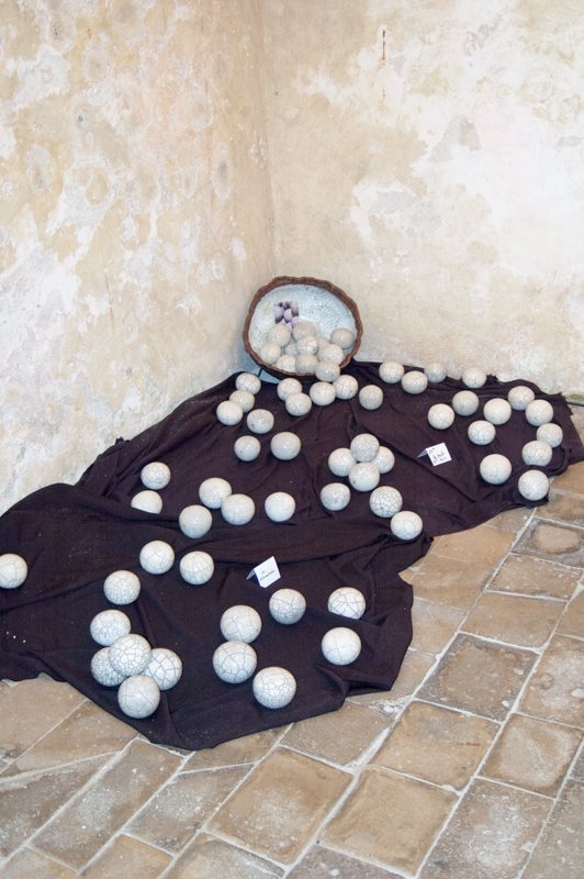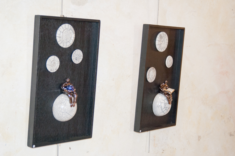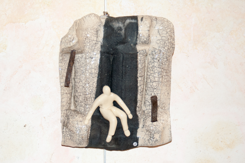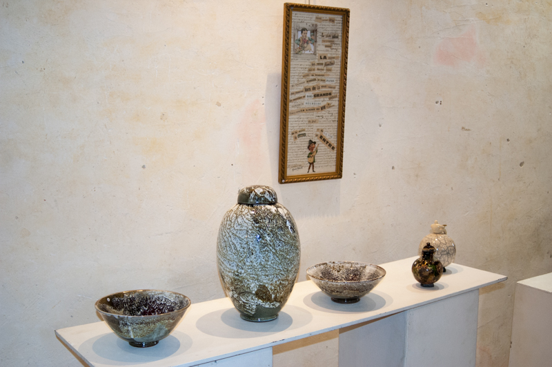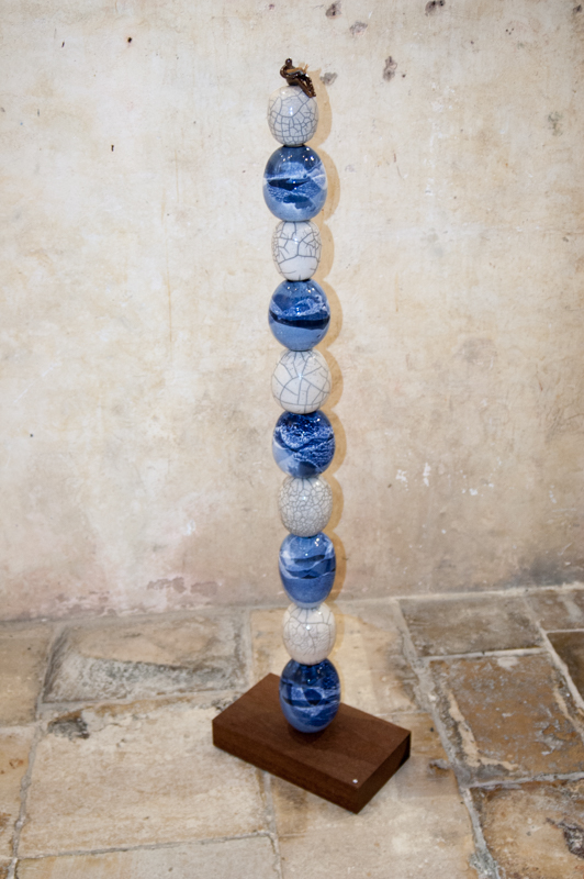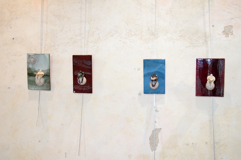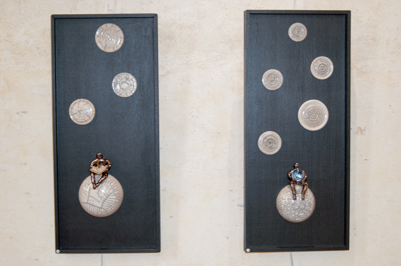 Passages heureux dans cette église au-delà du temps, rencontres épanouissantes. Toujours revenir au point de départ en se renouvelant tout en restant soi-même. Avancer en poésie� Sculptures céramiques , bols ,coupes , masques , totems , petits personnages occupés à lire et quelques incursions sur les murs, de collages et tableaux divers. Deux semaines lumineuses en perspective entre mer et pierres�