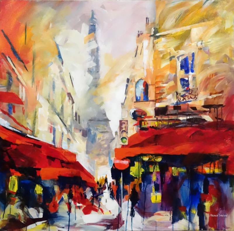 Par lâ??intermédiaire de la toile et des couleurs qui y sont posées, Oksana exprime ses sensitments. Viennent alors des toiles où le figuratif sâ??estompe au profit dâ??une abstraction de plus en plus présente. Cette coloriste sâ??y exprime à merveille.