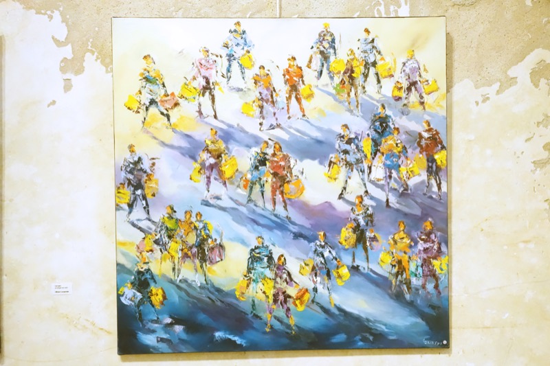 Représenter lâ??être humain, solitaire ou en groupe, en utilisant la représentation dâ??une silhouette symbolique répétée en signe dâ??« écriture ». Dâ??un même geste naît une silhouette différente de la précédente, lâ??idée est dâ??évoquer une métaphore de lâ??humanité, tous semblables et tous différents dans notre unicitéâ?¦