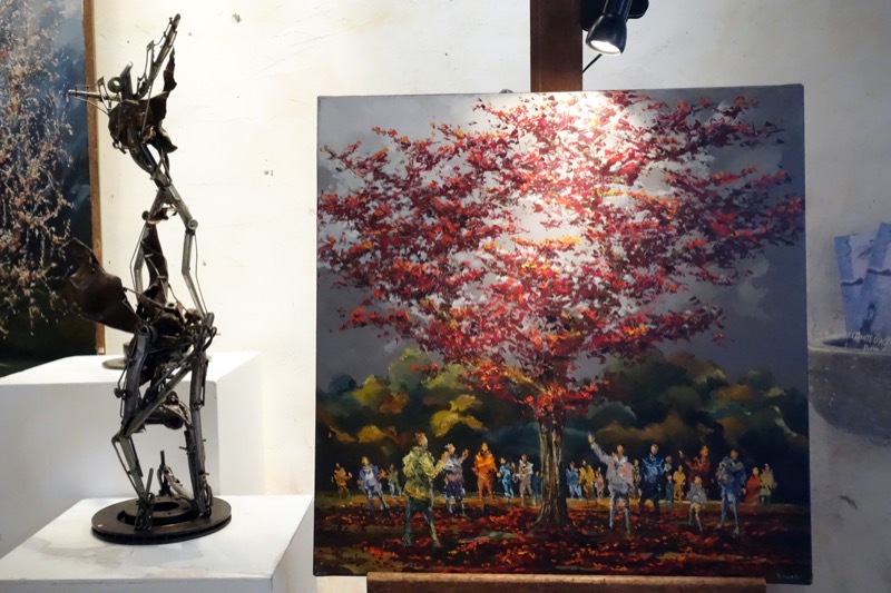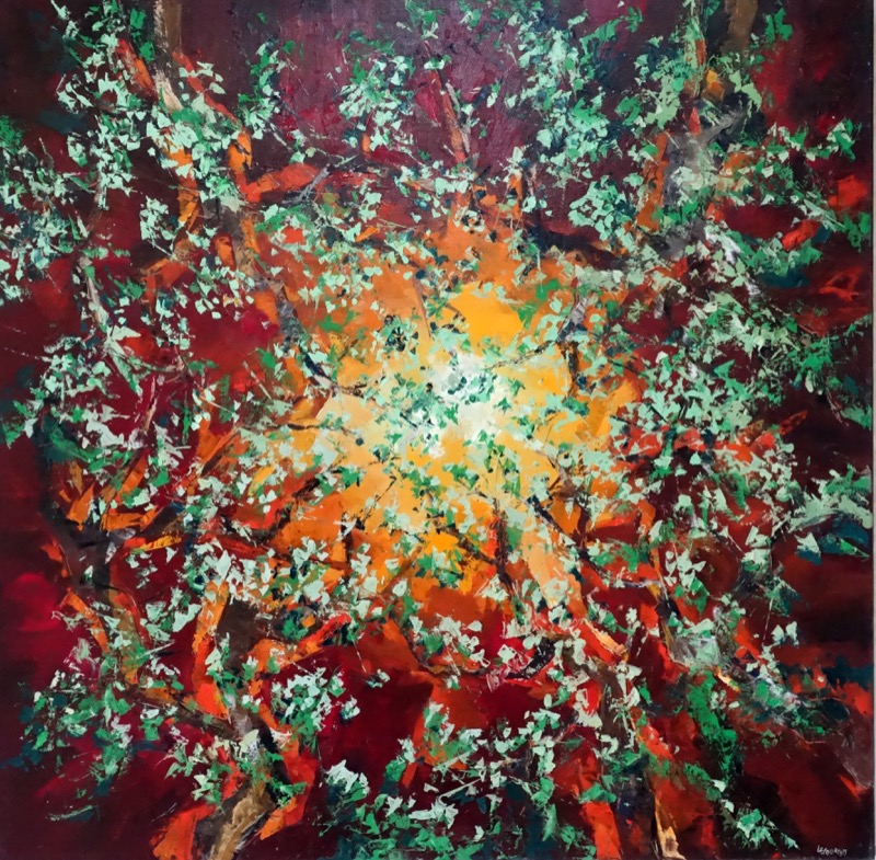 Parler de lâ??humain...câ??est aussi parler de lâ??arbre. Le passage, de la terre à la lumière , câ??est en quelque sorte la métaphore quâ??Olivier Lecourtois nous propose ici ..de lâ??enracinement dans la terre à la canopée...enchevêtrements de racines, sinuosités et rugosités des fûts au feuillages flamboyants parmi lesquels explose la lumière, peut-être celle de la vieâ?¦