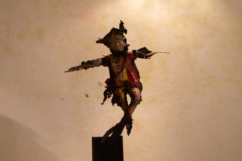 Tout dâ??abord, J. Allegre guette les vestiges abandonnés, les barils, boîtes et autres grands containers ferreux. Il sâ??est aussi créé un genre de par son mariage entre ferraille et bronze, sorte de matière ambivalente, chargée dâ??histoire et synonyme de richesse et dâ??intemporalité. Le sculpteur nâ??efface pas les défauts, il exalte la mémoire de lâ??objet, se moque du courant.