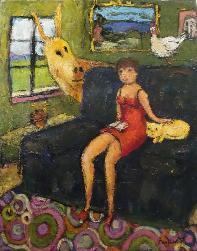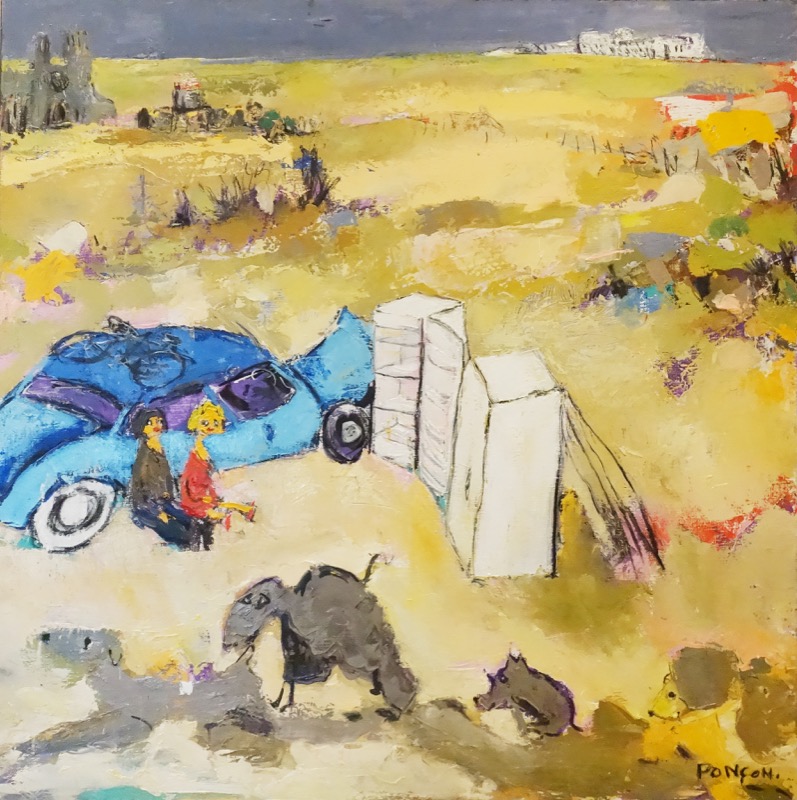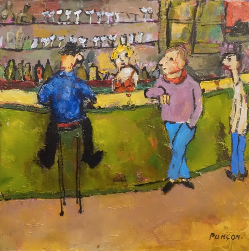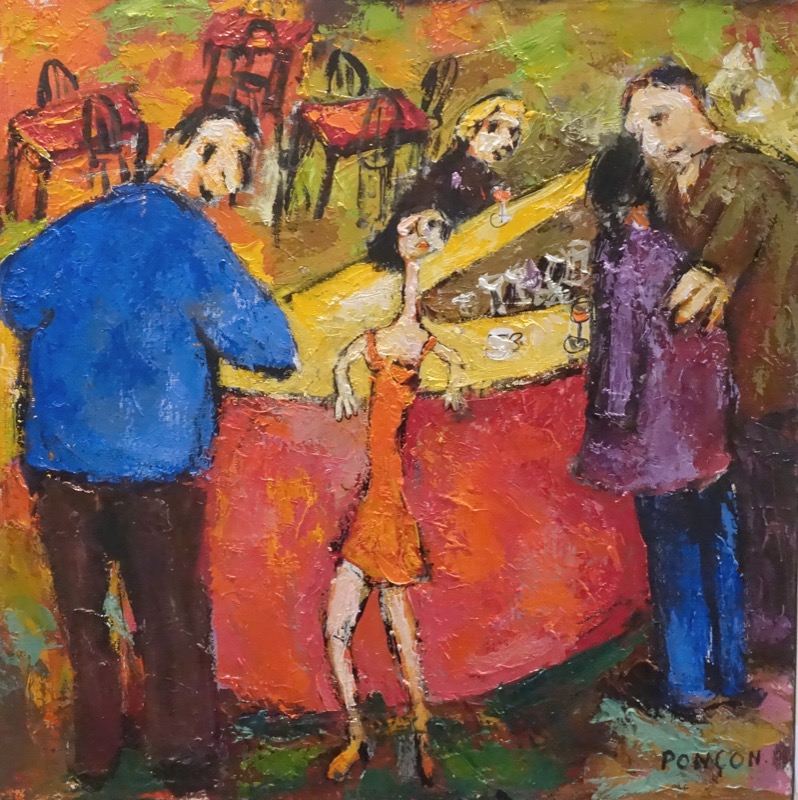 Alain Ponçon est né en 1947 à Moigny (91). Son atelier est situé à Saint-Maur-sur-le-Loir (28) France. Depuis sa première exposition, en 1971, à la Ferté-sous-Jouarre (77), ses Å?uvres ont beaucoup voyagé aussi bien en France quâ??à lâ??étranger. Son besoin de ruptures le pousse à travailler simultanément plusieurs séries. Il puise le substrat dans son propre vécu, dans sa sensibilité au présent, et exprime son ressenti dans une écriture poétique à plusieurs niveaux de lecture. Son univers est bien identifiable : il revêt des couleurs qui, pour être souvent vives, ne parviennent pas toujours à dissimuler la complexité dâ??un contenu où se mêlent la solitude, le rêve, le couple, les problèmes de lâ?? Humain élargis aux interrogations sociétales.