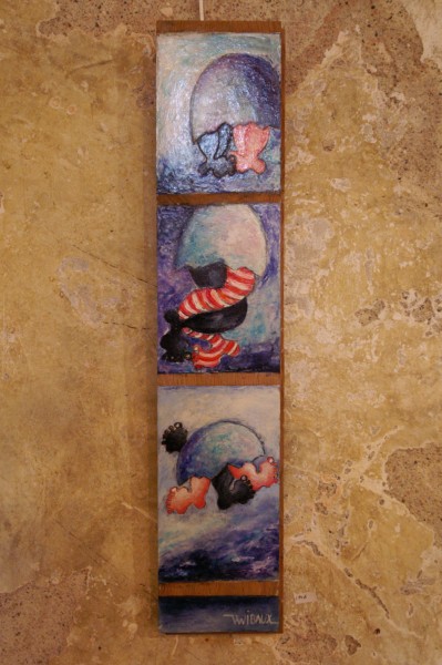 Véronique Wibaux a vécu 17 ans à Brazzaville au Congo, où elle est née, pays où toutes expressions artistiques animent avec force et contraste un quotidien incertain. Ses tribulations et son métier, restauratrice de tableaux, l??ont progressivement poussée à devenir la propre créatrice de ses oeuvres. Elle aborde avec beaucoup de générosité des grands thèmes ??du vivant et de la fragilité de la vie?.