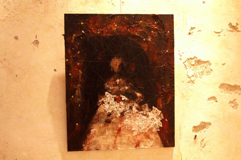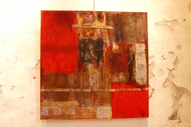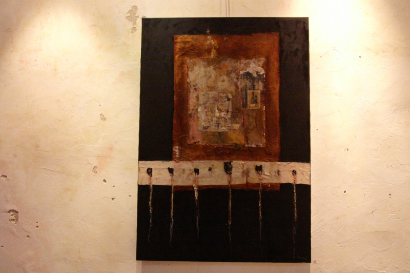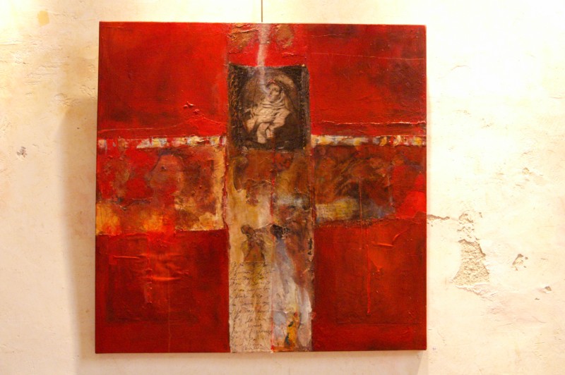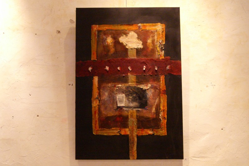 Lignes dâ??horizon comme des visions floues dâ??oasis, traces de cartes anciennes et autres fragments imprimés, évocations de madones et des matières incrustées, les oeuvres de Christelle Hervieu sont toujours basées autour du questionnement presque freudien et de la spiritualité.