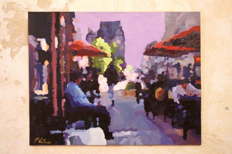 Pierre Wuillaume tient à exprimer sur toiles des instantanés de la vie courante, en essayant de ne pas tomber dans un hyperréalisme glacial. Petit instant fugace saisi, terrasse un jour dâ??été, déambulation, carrousel, représentation de sportifs en plein effort. Chacun pourrait sâ??y reconnaître. Tout est clarté et lâ??on sâ??attend à recevoir le souffle tiède dâ??un vent qui nous transporte ailleurs.